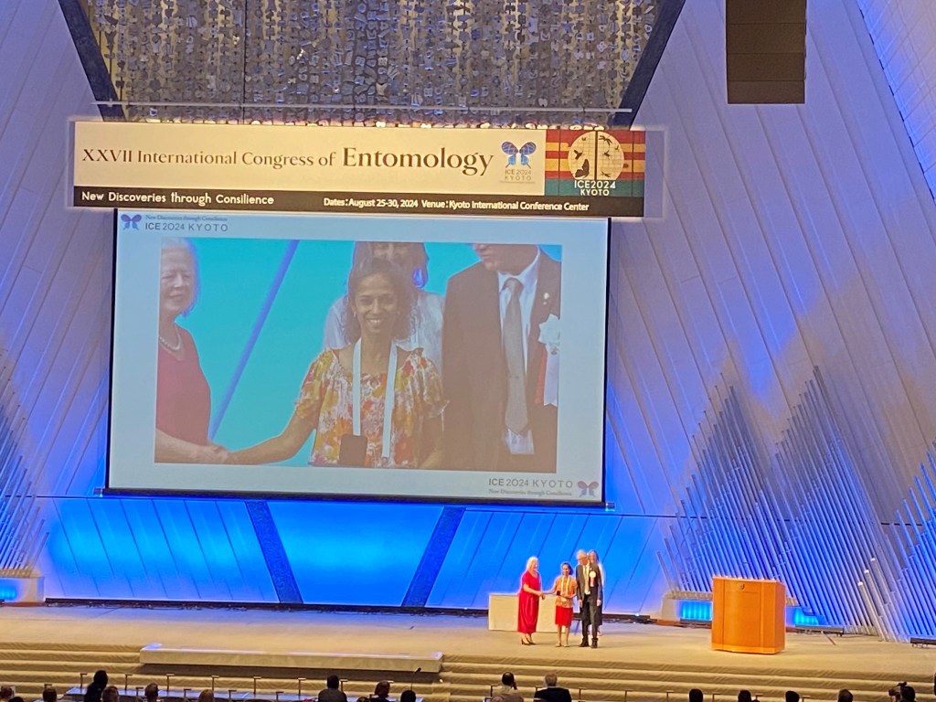 Deepa spent the week in Kyoto, Japan, attending the International Congress of Entomology. She was delighted that her PhD supervisor, John Borden, had received the Certification of Distinction for Outstanding Achievement in Entomology! Since John was unable to attend the meeting in person, Deepa was pleased to accept the award on his behalf. Congratulations, John!